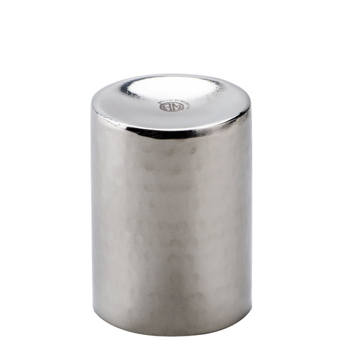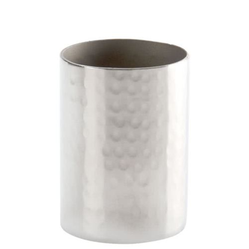 Store sugar and sweetener packets, coffee stirrers, and creamers in style with this American Metalcraft HMSPH2 2" x 2 3/4" round hammered stainless steel sugar packet / cube holder. Featuring a charming hammered finish and durable stainless steel design, this sugar packet / cube holder is a way to spruce up your tabletops while camouflaging everyday wear and tear. Alternatively, use it to store pens at your checkout or host stations, or for holding buttermints for guests to grab "on the go".