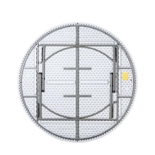 A 60" round heavy-duty granite white plastic folding table from Lancaster Table & Seating will make your next catered event a hit with guests. You can use this table at any bar, restaurant, buffet, catered event, school function, or office break room. Its high-impact polyethylene top will not crack, chip, or peel, making it an extremely cost-effective option for your business. This table also features a heavy-duty powder-coated steel frame fully equipped to hold even your heaviest serving platters or chafing dishes. Ultimately, this folding table is lighter, more durable, stronger, and easier to clean than standard wooden tables.