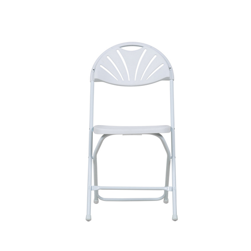 This Lancaster Table & Seating black plastic fan back folding chair is a great addition to any catered event! This chair's plastic back rest implements a cut out fan design that brings some flair to traditionally bland folding chairs. The back and seat are also contoured to fit the shape of each individual for comfort with extended use. It is versatile enough for both casual and high-end events, making it an economical choice for any business.