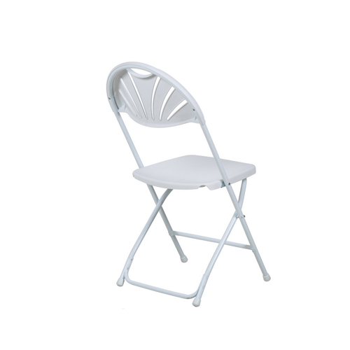 This Lancaster Table & Seating black plastic fan back folding chair is a great addition to any catered event! This chair's plastic back rest implements a cut out fan design that brings some flair to traditionally bland folding chairs. The back and seat are also contoured to fit the shape of each individual for comfort with extended use. It is versatile enough for both casual and high-end events, making it an economical choice for any business.
