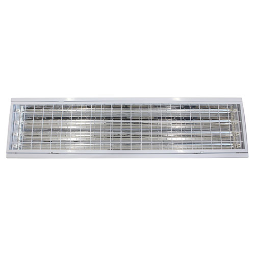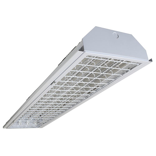 This 4x4ft High Bay Fixture by LumeGen comes with a wire guard and is prewired for double ended T5 LED tubes. It can house up to four (4) T5 lamps and includes two (2) 40" suspension chains and V Hooks for mounting.