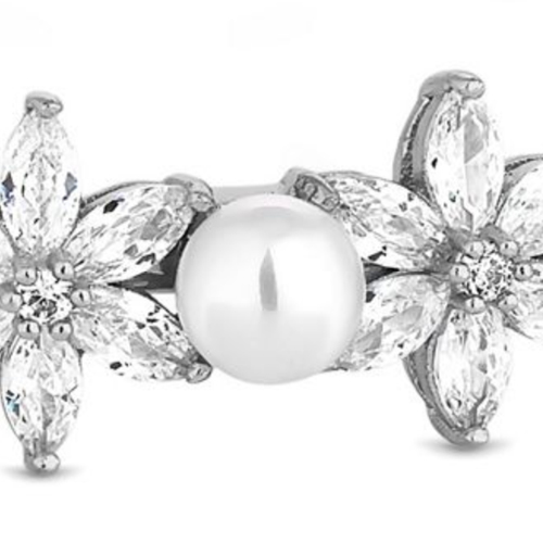 Cubic zirconia and pearl flower bangle.