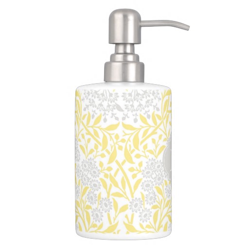 Monogrammed Yellow Gray Floral Damask Pattern Toothbrush Holder