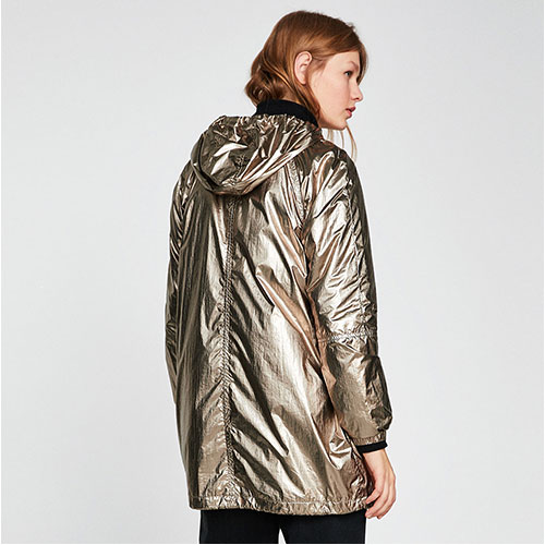 Features front zip fastening and side pockets.The surface is made of reflective material.