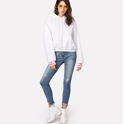 Solid color long sleeve letter printed hoodie.
