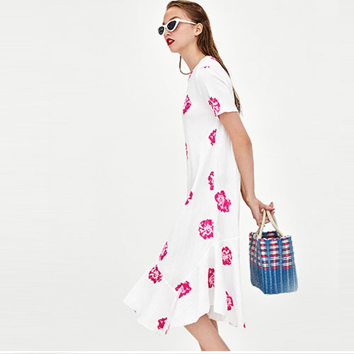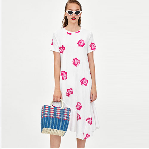 2018 New Surplice Wrap Tie Wias Floral printed textured dressShort sleeve