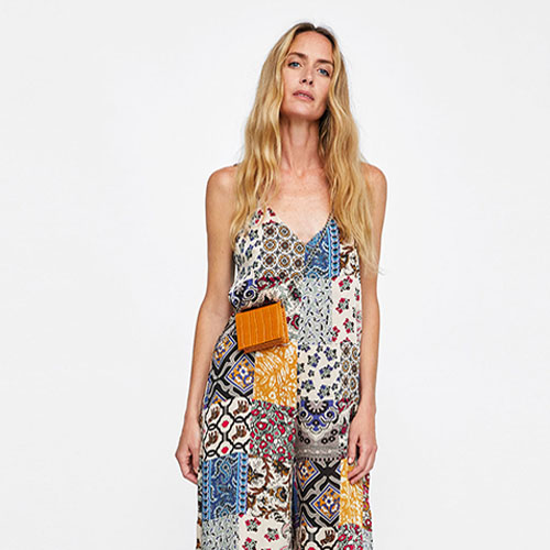 Flowy jumpsuit with V-neck and double straps.