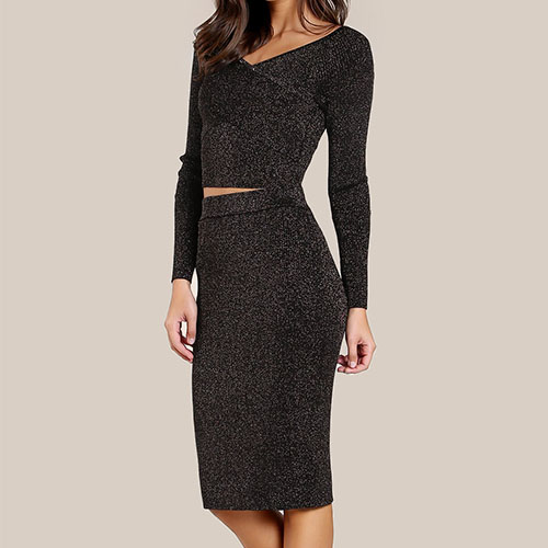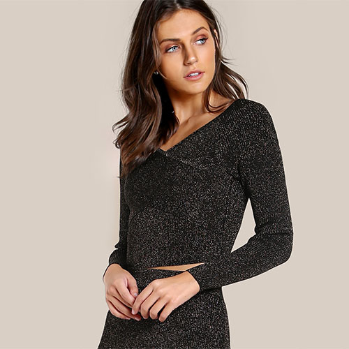 2018 Hot Criss Cross Glitter Crop Top BLACK GOLD.V Cllar Csual Seater With Long Sleeves.
