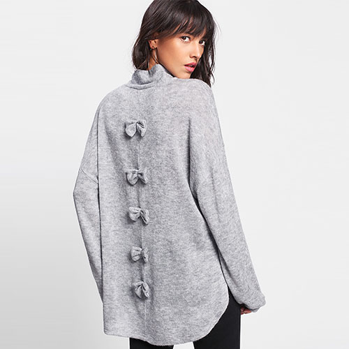 2018 Hot Split Side Dip Hem Bow Back Sweater Split Side Dip Hem Bow Back Sweater.