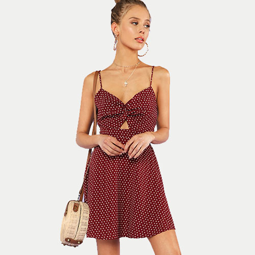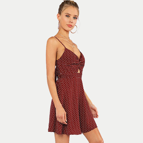 2018 New SHEIN Polka Dot Twist Front Knot Back Cami Dress