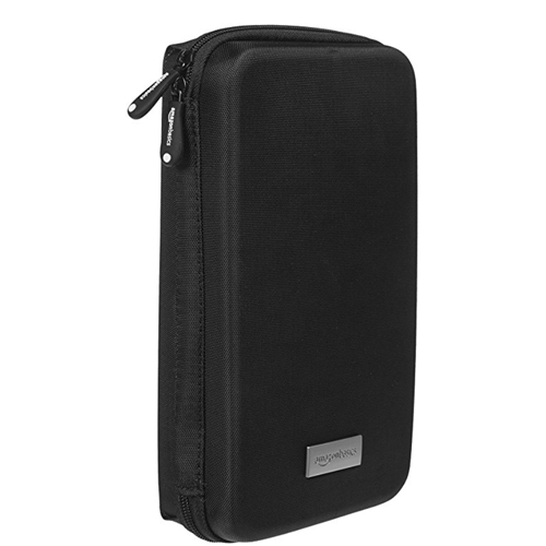 Offering a rigid exterior of molded-EVA plastic and a soft, scratch-free interior, the AmazonBasics Universal Travel Case will protect your small electronics (GPS units, mobile phones, digital cameras, the Flip, iTouch and much, much more) plus cables, extra batteries and other accessories. The removable wrist strap makes it easy to transport.
